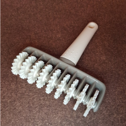 Anyaga: műanyagMéret: - Teljes hossza: 17 cm- Henger szélessége: 13 cm- Átmérője: 5 cm- Fogak száma: 9 darab- Fogak közötti távolság: 1 cm