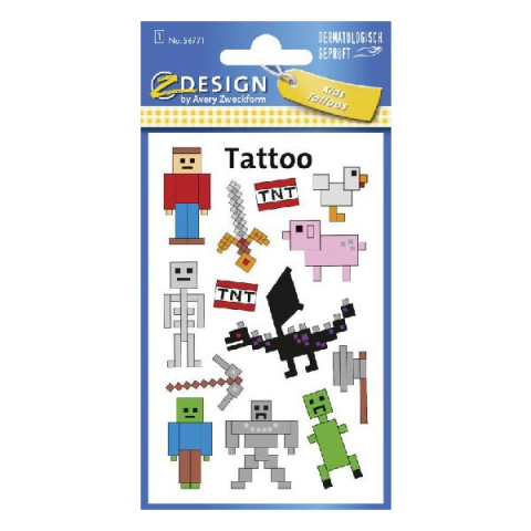 Tetoválás matrica AVERY pixel formák Az ideiglenes tetoválás vízálló, és megtévesztően valódinak tűnik. Egyszerűen vízzel kell felhelyezni, és kis olajjal könnyen eltávolítani. A tetoválás csúcsminőségű, gyermekbiztos és dermatológiailag tesztelt és kü