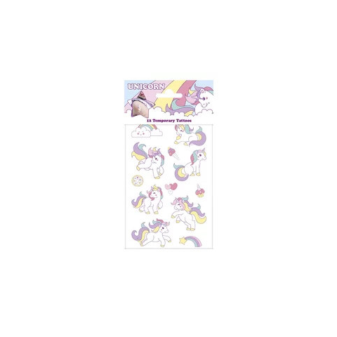 Korosztály: 3 - 6 év Gyermekeknek készült tetoválás utánzat, mely bőrre ragasztható. Kedvelt unikornis figurák láthatóak a képeken.Használati utasítás: vágja ki a kiválasztott képet. Távolítsa el az átlátszó filmréteget. Tegye a matricát a megtisztított, száraz bőrre. Nedves anyaggal áztassuk kb 30 másodpercig, míg a papírréteg könnyen el nem választható. Ma