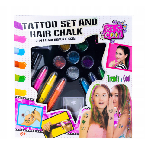 1 kép Tetováló és hajfestő készlet - 6 színes kréta és 8 tetováló minta!
