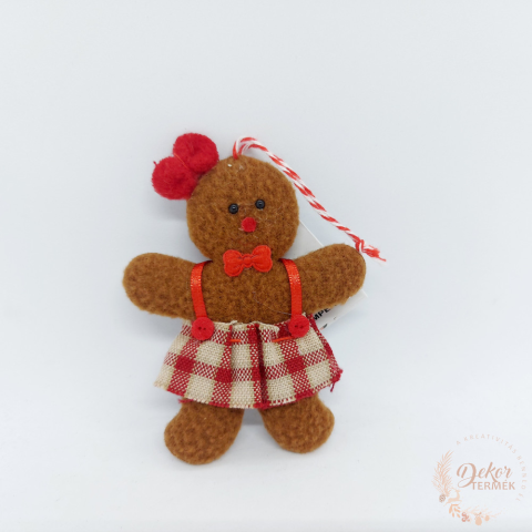 Méret: 10 cm Szín: barna Anyag: textil Tömeg: 4 gramm Aranyos mézeskalács figura a karácsonyi dekorációhoz!