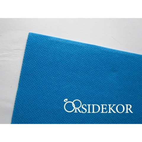 38x38 cm-es textilhatású szalvéta türkiz színben. A szalvéta az esküvői látványvilág elengedhetetlen kelléke. A tökéletes esküvői dekoráció eléréséhez az egyéb elemekkel színben azonos szalvétát használjatok. 40 db/csomag 190g/csomag