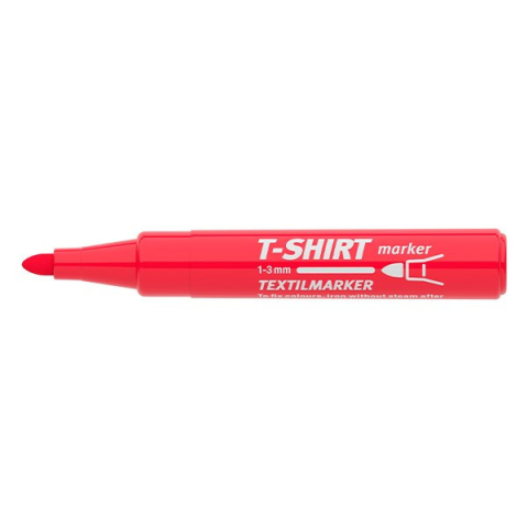 Textilmarker ICO T-Shirt piros Textilmarker, textiliák pl:selyem,pamut,vászonra.Pl: tornacipő, póló, táska írására,jelőlésére alkalmas.Kerekített csúccsal, vízbázisú festékkel töltve, rendkívüli színtartóssággal és magas fényállósággal.A dekoráció rögz