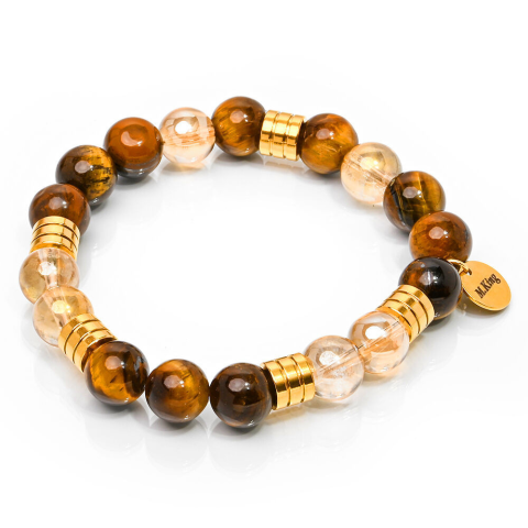 1 kép The Gods of Egypt – Arany angyal aura és tigrisszem ásvány karkötő dobozban