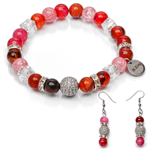 1 kép The Red Queen – Achát és hegyikristály exkluzív ásvány ékszerszett (karkötő + fülbevaló) dobozban