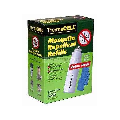 ThermaCELL R-4 utántöltő 48 órás Az összes ThermaCell készülékhez (hordozható készülékek, lámpás, fáklya) használható gazdaságos kiszerelésű utántöltő csomag. Egy palacknyi folyékony gáz 12 órán keresztül, egy lapocska 4 órán át használható (a csomag tart