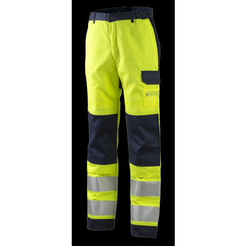 THOR XPERT MR HI-VIZ VÉDŐNADRÁG_M * 300 g/m2 vastag, 78% pamut + 20% poliészter és 2% antisztatikus alapanyagú sárga , jó láthatóságot biztosító, vegyszer-, láng-, és íválló, antisztatikus, hegesztő védőnadrág, * cipzáras záródás, gumis derékrész övbúj
