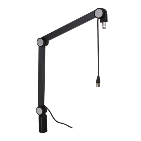 Mikrofonállvány belső rugós kialakítással Kézzel meghúzott súrlódó zsanérok a sima, csendes működéshez Alkalmas minden szabványos mikrofonhoz és ütközőtartóhoz Kábelkezelés: Rejtett kábelkezelés (3,5 m XRL kábel) Kar anyaga: Extrudált alumínium Asztali ta