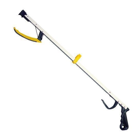 Az alumínium kézhosszabbító lehetõvé teszi, hogy a páciensnek ne kelljen elõrehajolnia, ha valamit fel akar venni a padlóról. A fogantyú-résszel lehet irányítani a hosszabbító végén található csiptetõt, melyet lágy, tapadó textília borít, megakadályozva a