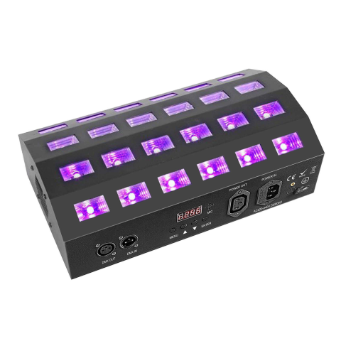 Thunder LUV-24 UV LED Derítő: 24x3W erő, DMX vezérléssel ⚡ Ez a professzionális Thunder LUV-24 UV LED derítő 24 darab, 3W-os nagy teljesítményű UV LED-del van felszerelve, így lenyűgöző fényerőt biztosít minimális energiafogyasztás mellett. A beépít...