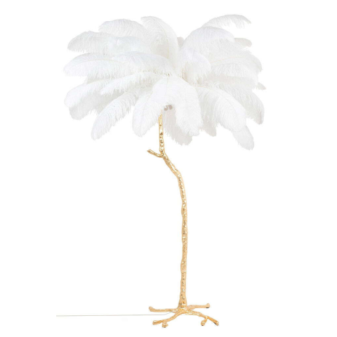 1 kép TIFFANY 175 állólámpa fehér sárgaréz/természetes tollak