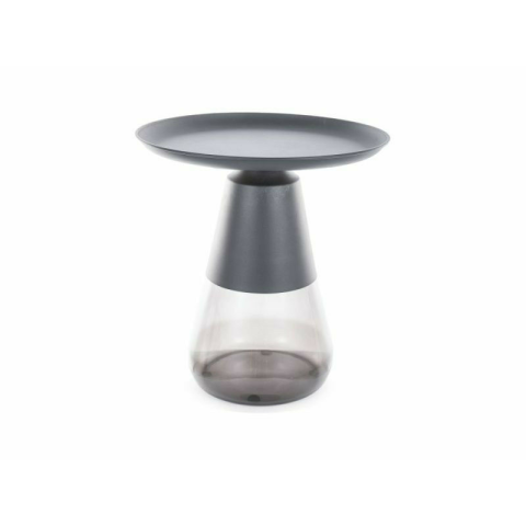 1 kép Tiffany Modern Kerek Fém-Üveg Dohányzóasztal Matt Fekete