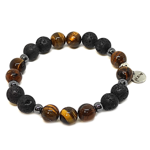 1 kép Tiger Sun – Lávakő, hematit és tigrisszem ásvány karkötő dobozban