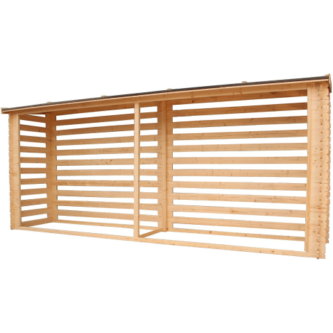 Vásárolja meg most a TIMBELA M203 6,7 m3-es tűzifatárolót, és használja ki ezt az okosan kidolgozott rendszert a tűzifa rendezett tárolására. A kereszt-, horony- és csapszerkezet kombinációja stabil és megbízható szerkezetet biztosít. A nyitott kialakítás ideális levegőkeringést biztosít, a tető pedig védelmet nyújt az időjárás hatásaival szemben. Kiváló minőségű, északi fenyőből/lucfenyőből készült fatárolónk OSB-3 vízálló rétegelt lemeztetővel