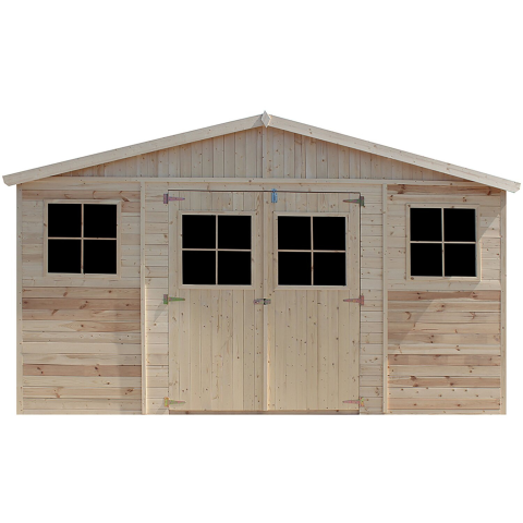 A Timbela kerti faház helytakarékos kialakítású, alapterülete 7,98 m2. Átjárási szélessége 155 cm, átjárási magassága 176 cm. A széles bejárat megkönnyíti a kerti faházba való belépést, akár nagyobb gépekkel, kerti eszközökkel, kerékpárokkal és kerti bútorokkal is. Az orom magassága 246 cm, aminek köszönhetően a ház belmagassága kellemes. A padló külön kapható. Klasszikus kialakítás A fából készült kerti ház vonzereje klasszikus kialakításában r