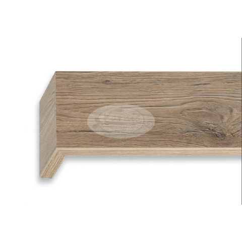 Timber 1 sínes sanremoi tölgy színű előlapos fa karnis MENNYEZETRE Anyaga: fa Színe: sanremoi tölgy A fa előlap magassága 110 mm, vastagsága: 19 mm Az 1 soros sín méretei: 80 mm széles, 16 mm magas A (fotón is látható) szett tartalma: - fa előlapos ka