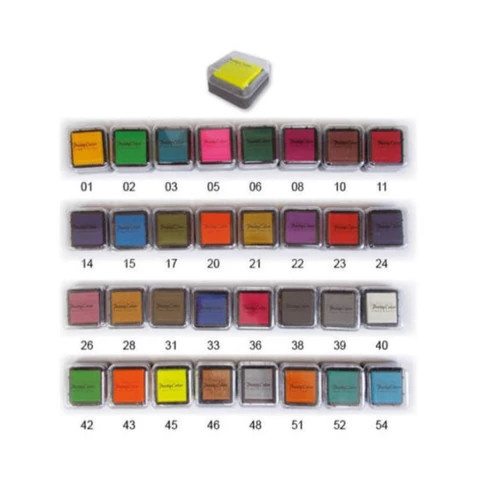 Négyzet alakú, egyszínű tintapárna műanyag dobozban. A megadott színkódhoz a képen látható szám fölötti egyszínű tintapárna tartozik. A tintapárna mérete 23x23 mm. A doboz mérete: Szélesség: 33 mm Magasság: 20 mm Mélység: 33 mm