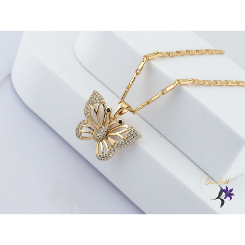 Antiallergén bőrbarát pillangós medálos nyaklánc Szin: 18K Méret: 50 cm/3mm Medál: 30x23mm