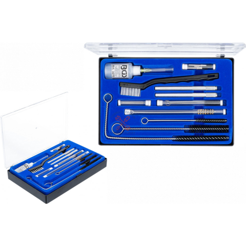 Leírás: 3 nagyméretű, különböző hosszúságú kefe 5 minikefe 6 mikrotű 1 sárgarézkefe 1 nagy tisztítókefe 3 rövidkefe 2 befogó nyél 1 palack pneumatikus festékszóró pisztolyok speciális kenőanyaga számára műanyag kazettá