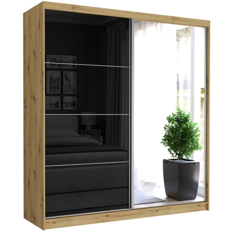 1 kép TIVARO III. Gardróbszekrény fekete üveggel, tükörrel 203x213x60 - artisan