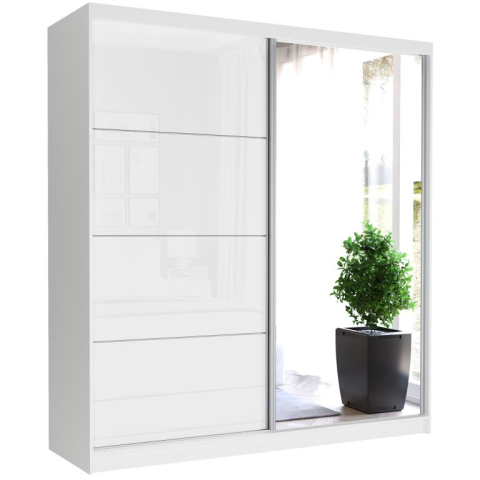 A 203 cm-es Tivaro IV. tolóajtós gardróbszekrény stílusos és praktikus megoldás bármely hálószobába vagy gardróbba. Az elegáns fehér üveg és az elülső tükör kombinációja modern és luxus jelleget kölcsönöz a darabnak. Termékjellemzők: ✔ Tolóajtós ren...
