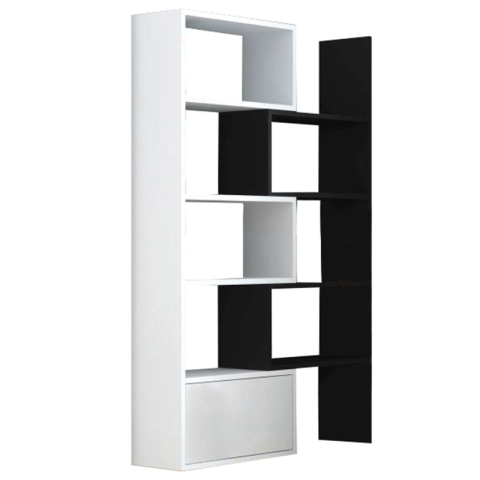 Többfunkciós könyvespolc, fehér/fekete, ASTA bútor termékleírás