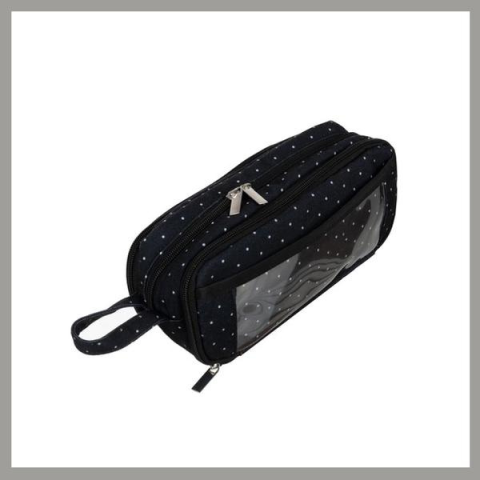Többrekeszes Tolltartó 00024511Ez a praktikus és stílusos tolltartó ideális választás iskolásoknak és diákoknak, akik szeretik rendszerezetten tartani írószereiket. A pöttyös mintázat modern megjelenést kölcsönöz, az átlátszó előlapon keresztül pedig könnyen látható a tartalom.Főbb jellemzők:Típus: cipzáras, többrekeszes tolltartóAnyag: textil és PVC kombináció (elől átlátszó ablak)Design: fekete alapon fehér pöttyös mintávalRekeszek:1 fő rekesz toll