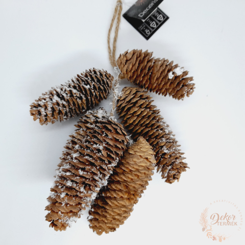 Szín: barna-havas Méret: 18 cm (kb 10 cm-es tobozok) Tömeg: 114 gramm Akasztós.