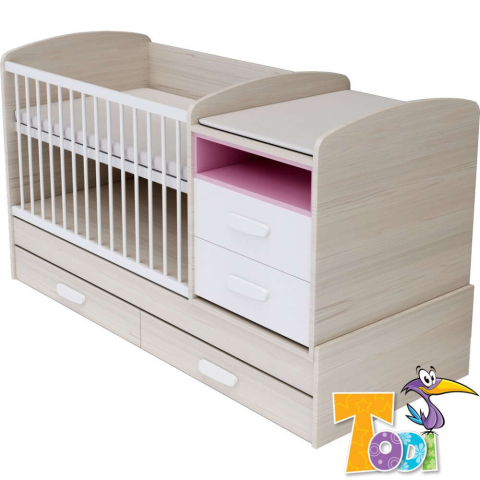 Todi Ice Cream kombi kiságy pelenkázó komóddal - woodline cream/pink