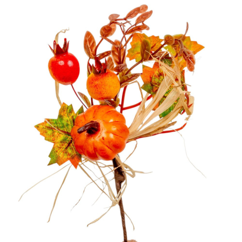 A tökös szalmás pick 19 cm igazi vidéki, aratós őszi hangulatot ad a dekorjaidnak. Mini dísztök, gyümölcsök, levelek és szalmaszálak díszítik. Koszorúba, kopogtatóba, virágtálba is könnyen beépíted. Egyetlen pickkel feldobsz egy mécsestálat vagy ajándékcs