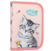 Egyszintes iskolai tolltartó, üres. 25 gumiszalagot tartalmaz az írószerek tartásához. A belső szárnyakon átlátszó fóliák vannak az órarendhez.