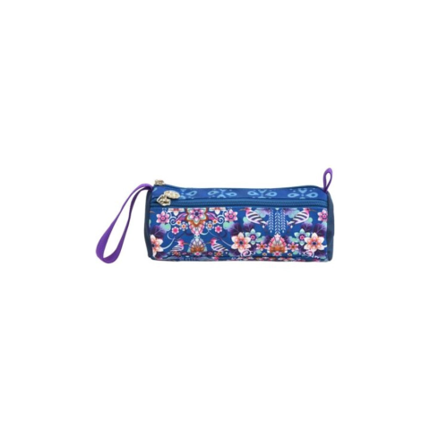 Üres, hengeres tolltartó 2 zippzárral, Catalina Estrada által tervezett mintával. Mérete: 21x8,5 cm.