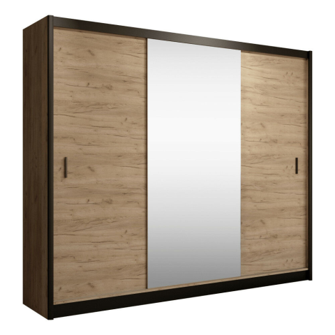 Tolóajtós szekrény, fekete/craft tölgy, 250x215 cm, CRAFT bútor termékleírás