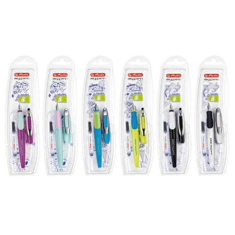 Töltőtoll Herlitz MyPen balkezes L-hegy vegyes my.pen töltőtollműanyag testtelergonomikus gumis fogórésszelformatervezett fém csíptetővelegyedülálló tintatovábbítási rendszerrelbalkezestöbbféle színben (a szín nem választható)L-es hegyvastagsággalblisz