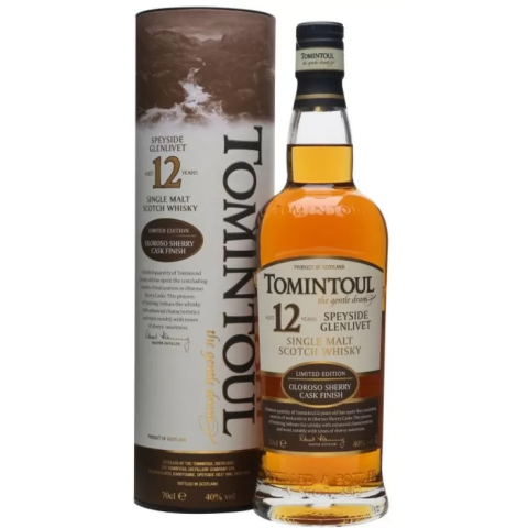 A Tomintoul 12 Years Oloroso Sherry Cask Finish egy különleges Speyside single malt whisky, amely az érlelési folyamat végén Oloroso sherry hordókban kapja meg a végső érlelését. Ez a whisky az ínycsiklandó sherry hatását ötvözi a Tomintoul hagyományos, l