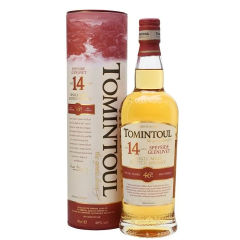 A Tomintoul 14 Years egy finom Speyside single malt whisky, amely a hosszú érlelési idő és a klasszikus Speyside stílus jegyeit ötvözi. A whisky az érlelési idő alatt szépen fejlődik, és egyedi karaktert nyer a bourbon és sherry hordók kombinált hatásának
