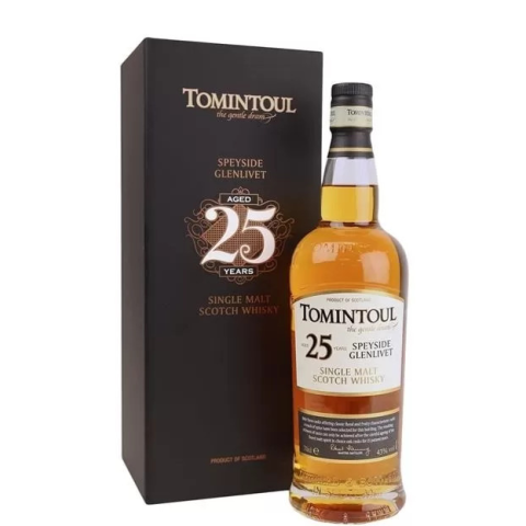 A Tomintoul 25 Years egy kiváló single malt scotch, amely a Tomintoul lepárló kifinomult stílusát és a hosszú érlelés előnyeit egyesíti. Ez a whisky a tapasztalt whisky rajongók és gyűjtők számára kínál egyedülálló élményt, és tükrözi a minőség iránti elk