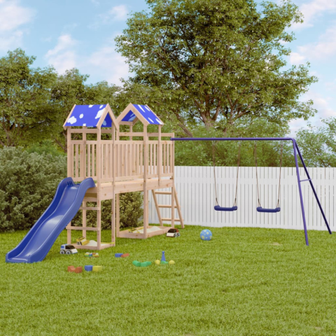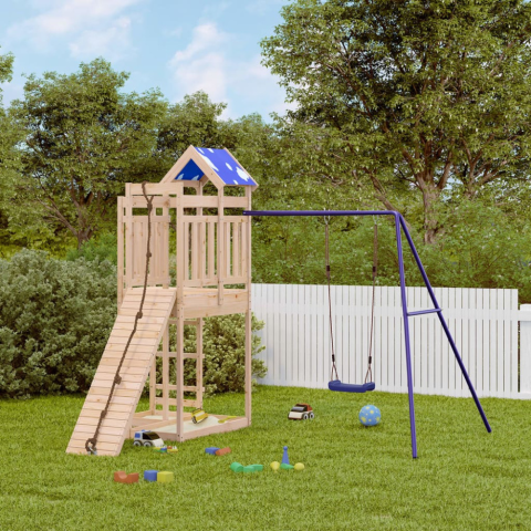 Szeretné, ha gyermekei szabadon játszhatnának otthon? Ez a fából készült játszószett varázslatos kalandok játszóterévé varázsolja kertjét! Tartós anyag: A kerti játszószett váza tömör fenyőfából készült. A tömör fenyőfa az erősségéről és tartósságáról ism