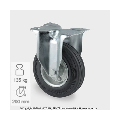 Préselt acéllemez villaszerkezet, cinkkromátozott, dupla golyósoros csapágy a nyakban, porvédő, csavarozott tengely. Kerék: préselt acéllemez keréktárcsa, fekete gumi futófelület, tűgörgős csapágy. Kerékátmérő: 160 mm Teherbírás: 135 kg (dinamikus)