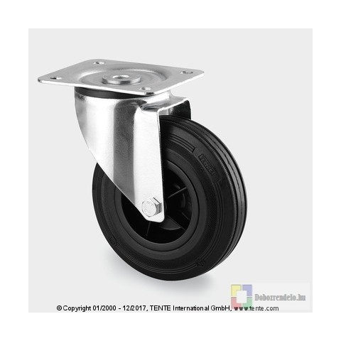 Önbeálló görgő, préselt acéllemez villaszerkezet, cinkkromátozott, dupla golyósoros csapágy a nyakban, csavarozott tengely, talplemezes. Polipropilén keréktárcsa, tömör fekete gumi futófelület, siklócsapágy. Műszaki adatok: Kerékátmérő: 125 mm Futófel
