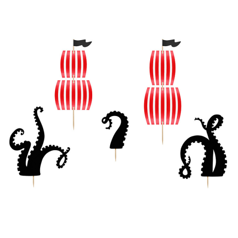 Toppers Pirates Party minták és színek keveréke, magasság kb. 13,5 cm-től 21 cm-ig. (1 db / 5 db.)