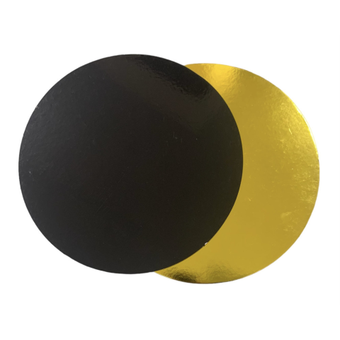 Torta alátét kerek 35 cm Arany/Fekete, 3 mm kétoldalas Elegáns és tartós torta alátét kétoldalas kivitelben – arany és fekete színekben A torta alátét kerek 35 cm egy prémium minőségű, kétoldalas tortaállvány, amely arany és fekete színekben érkezik