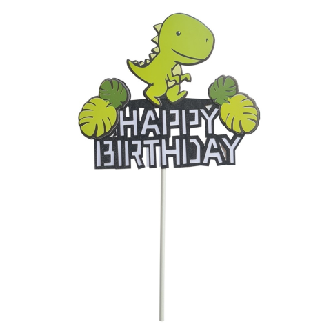 Dinoszaurusz mintájú torta beszúró, torta dekoráció Happy Birthday felirattal, mellyel Te is egyszerűen díszítheted az elkészült süteményeket és tortákat. Tulajdonságok: Anyaga: papír Mérete: - A teljes beszúró magassága: 235 mm - A figura mérete: 120 m