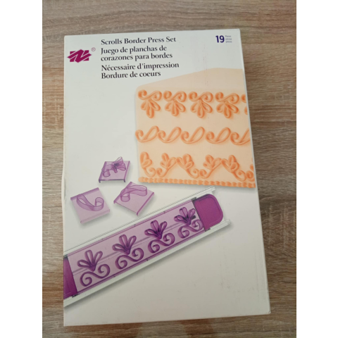 A szett 4 x 4 mintát tartalmaz és egy sínt, amelybe a mintázó nyomdák belehelyezhetők, így akár azonos vagy különböző minta is variálható egyszerre, de használhatók a sín nélkül is. Ezzel az eszközzel könnyedén megjelölhető a minta, melyre ezután felvih