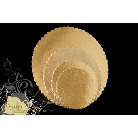 Hullámos szélű torta alátét - arany színű Prémium minőség 30 cm-es Vastagsága 3 mm préselt papír. Származási hely: EU