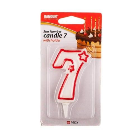 Születésnapi gyertya ?7?, a műanyag beszúrható gyertyatartó a gyertya tartozéka. Méretek: 7 x 4,5 cm A termék kerti partikon, piknikezéskor, stb. használható.