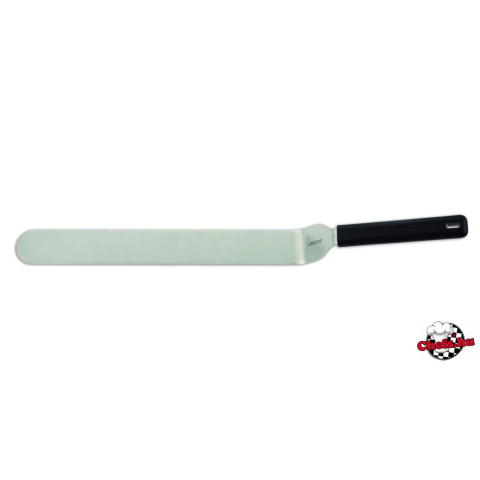 Tortasimító 250 mm hosszúságú pengével. A simító 20 cm hosszú, hajlított pengéje, mely rozsdamentes acélból készül, kiválóan alkalmas torták tetején, oldalán a krémek elsimításához. A simító nyele polipropilénből készül, mely egész napra kényelmes fogást