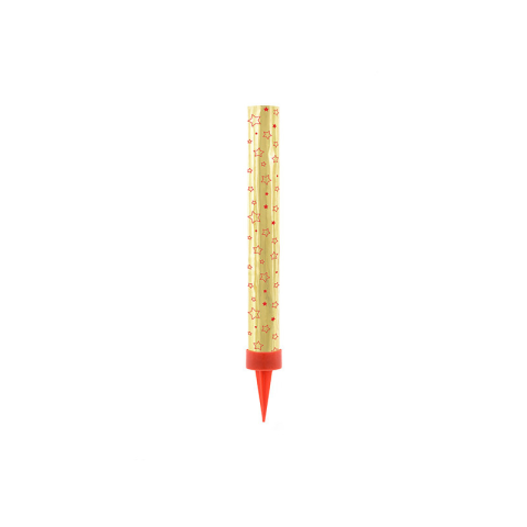 Arany színű torta szökőkutak piros csillagmintával, magasság kb. 12 cm. A termék címkézése csak francia, német, olasz, cseh és lengyel nyelven van. Ha Ön olyan országban vezeti be a terméket a piacra, ahol a fenti nyelvek egyike sem a hivatalos nyelv