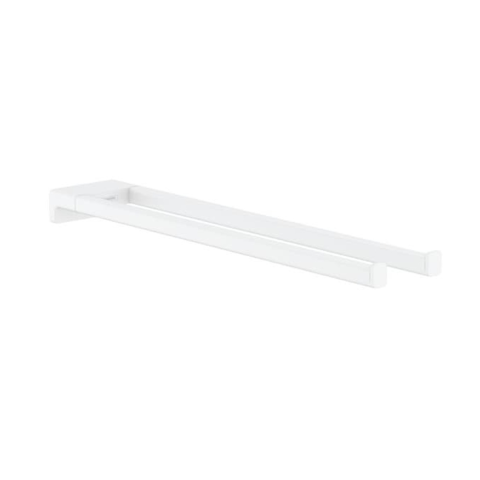 Törülközőtartó fehér matt színben színű. A Hansgrohe márkájú fürdőszobai kiegészítő szélessége 44,5 cm alapanyaga fém. Szerelési mód fúrással.