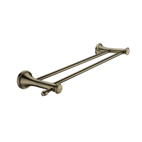 Dupla törölközőtartó. Hossza 51,5 cm. Anyaga sárgaréz, antikolt sárgaréz kivitelben.
